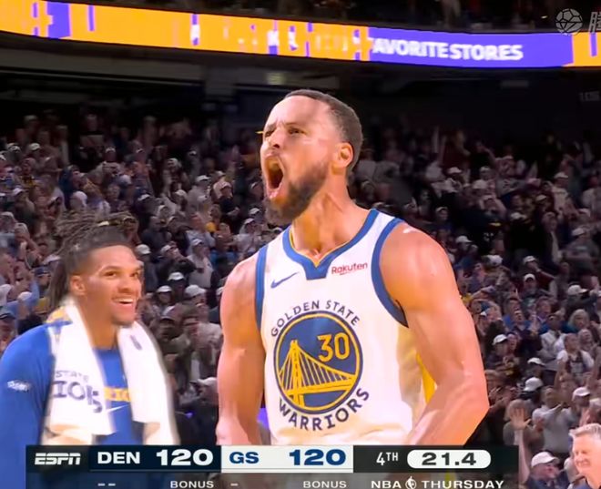 37岁库里仍无解!末节+加时独砍22分掀翻掘金,戈登50分成背景板